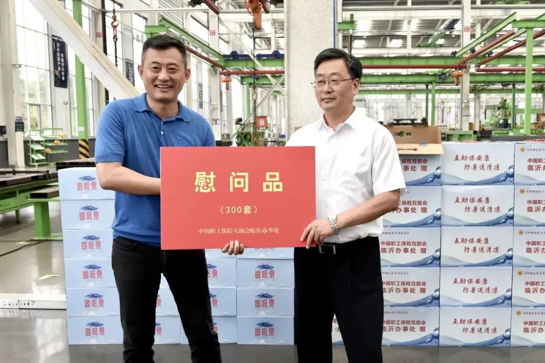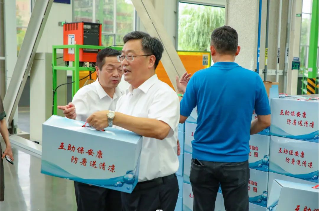 2023年7月20日,市人大常委會副主任、市總工會主席劉飛,市總工會黨組成員、經審委主任于建坤一行,在區人大副主任、區總工會主席王愛君,區總工會黨組書記、常務副主席陳紀曉,區人大副主任、蘭山經開區黨工委書記王玉杰,公司黨委書記、董事長付彬的陪同下,到我公司開展職工互助保障,“夏送清涼”活動。